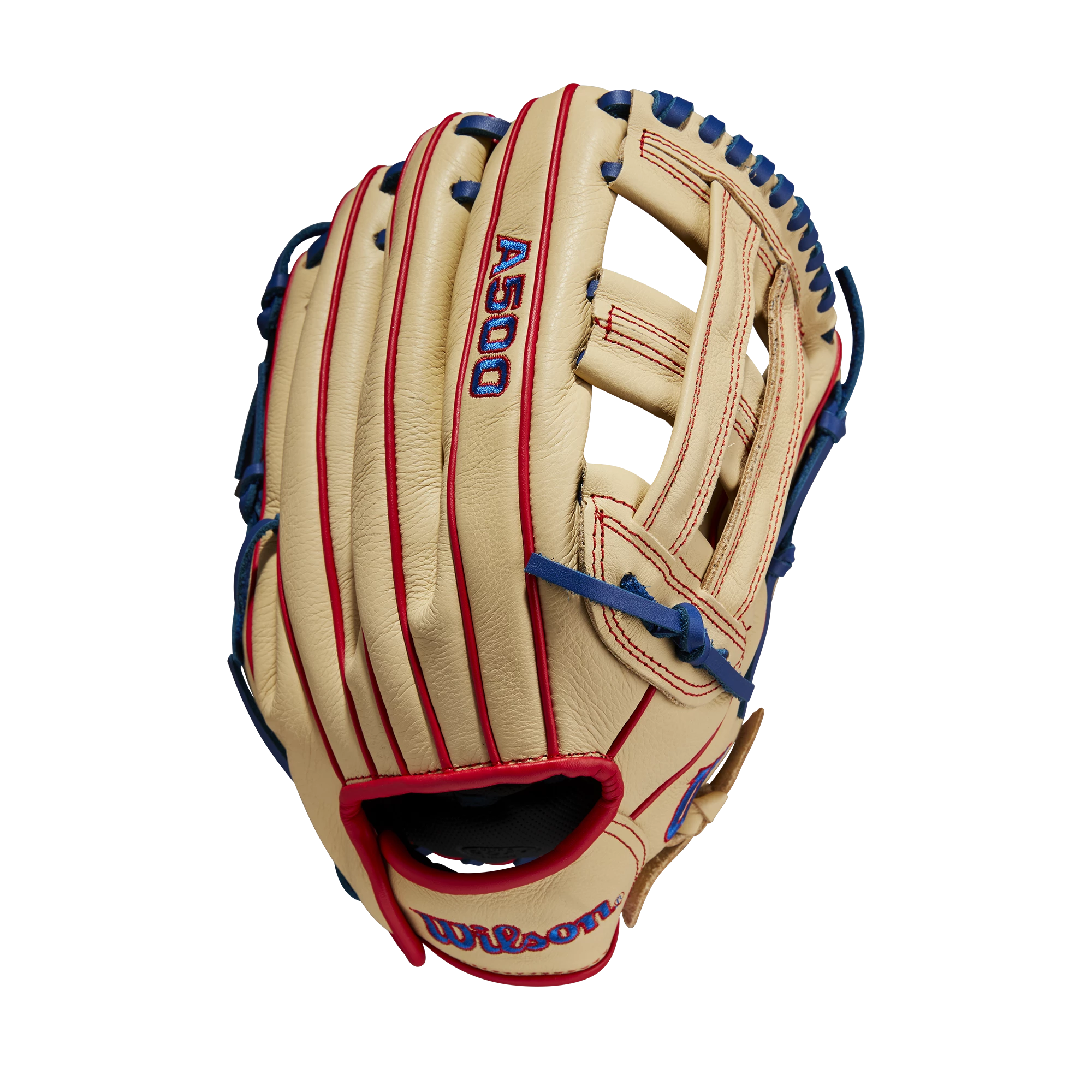 The 12” A500, ideal for youth ballplayers who see time in both the infield and the outfield, features a durable Dual Post Web to channel the ball into the pocket. The all-leather construction offers a sturdy and lightweight feel with Blonde Top Grain leather, Royal Blue laces, Red binding and dual welting. Engineered for youth players, the A500 boasts a Quick Fit Wrist elastic system that adjusts to hug the wrist, and finger stalls are short and narrow for a steady control of the glove.