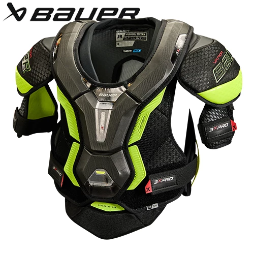 The new Vapor 3X PRO shoulder pad delivers elite level protection at an incredible value. AEROLITE cap technology brings the lightest option to this price point. The floating sternum on top of the VENTAPRENE vest allows for more movement and flexibility on the ice, while the spine protection combined with extended rib wrap gives you even more protection